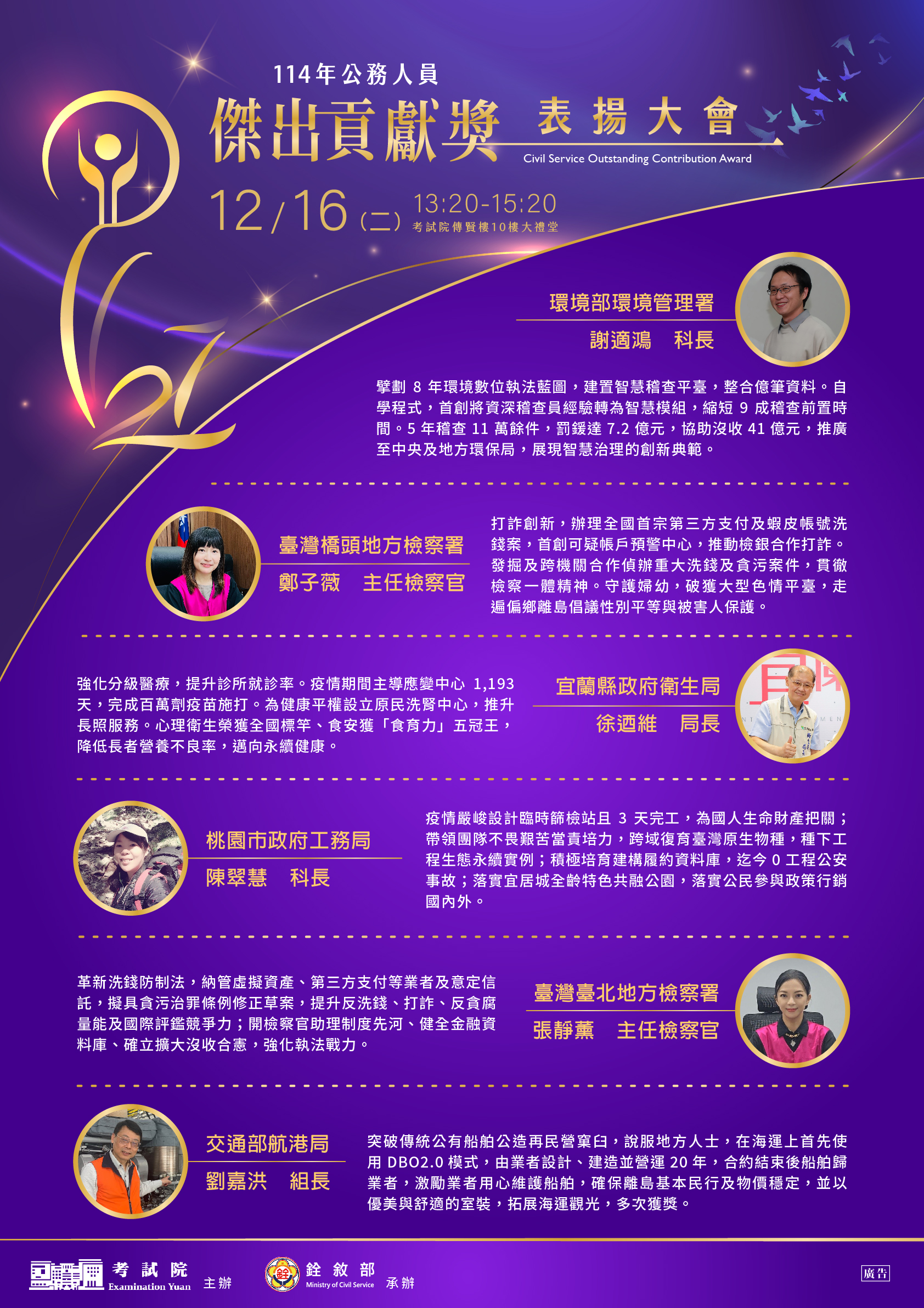 Post published:2025-11-26Post author:thvsmlc071Post category:人事室檢送「114年公務人員傑出貢獻獎表揚大會」電子海報, 請查照。1140010389下載1140010389_1下載1140010389_2-2下載1140010389_3下載 Post Views: 15Read more articles上一篇文章檢送東海大學115學年度碩士在職專班招生簡章及海報,請查照。下一篇文章有關客家委員會「115年度客語能力各級認證日程表」, 請查照。